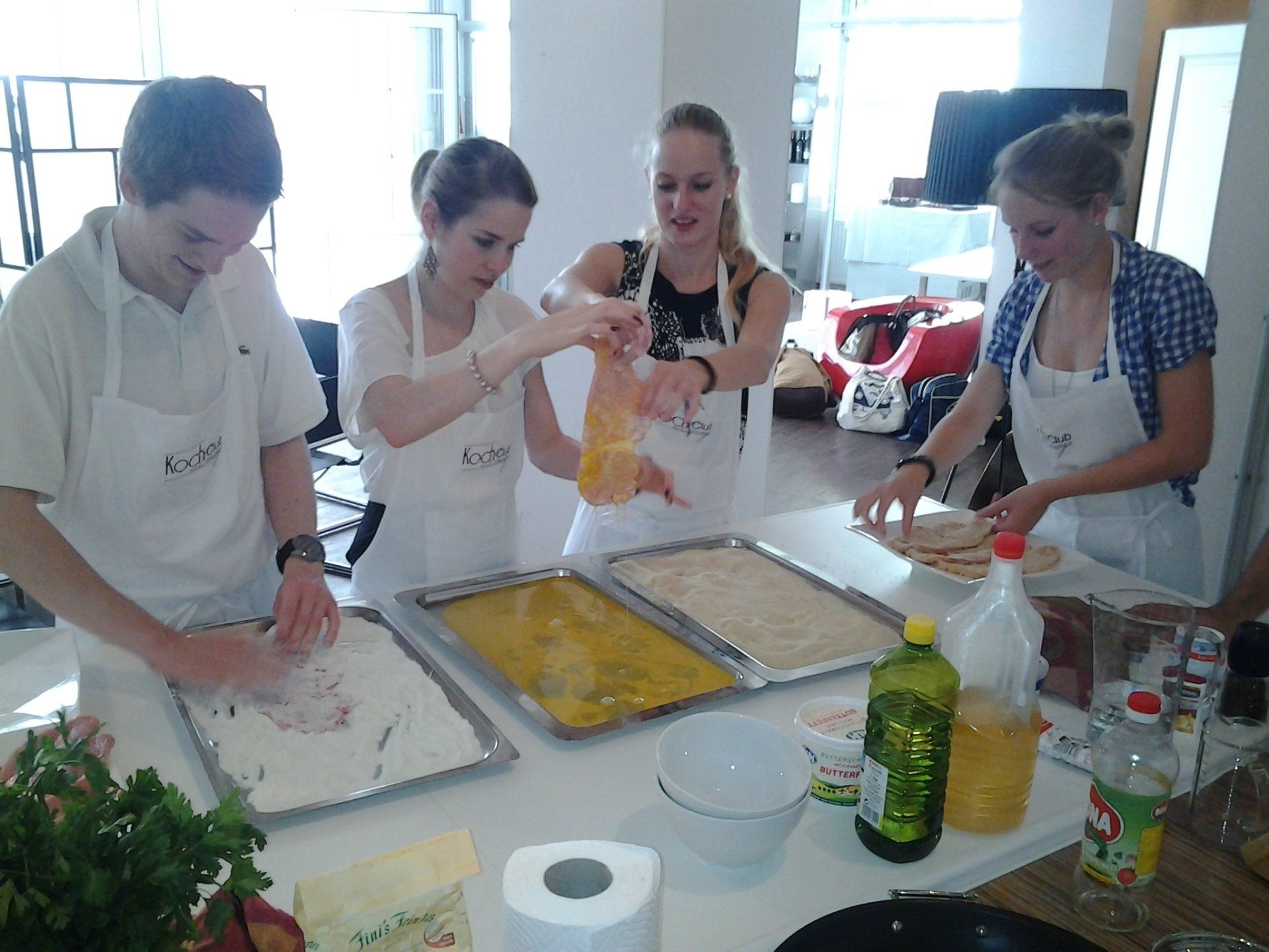 Statt essen gehen einfach gemeinsam mit vielen Freunden oder Kollegen kochen, essen und einen gemütlichen Abend geniessen.